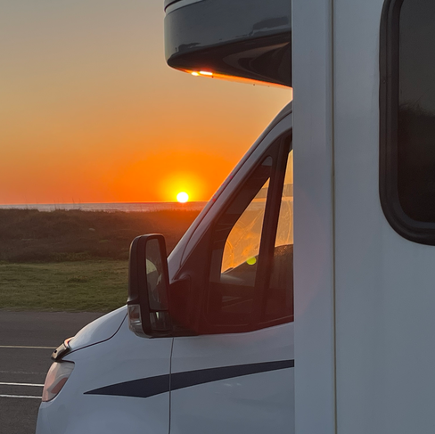 The trip today was just a quick 30 mins. Liz drove ahead and found a great site in the primitive camping area. It was on pavement so that was good, but luckily the next morning we were able to move to the beach side of the RV area. About a minute walk to the beach so we were very close to the amazing ocean and all the weather.
